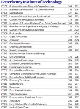 At Letterkenny Institute of Technology, many Level 8 Honours Degree Courses have similar points requirements as last year: