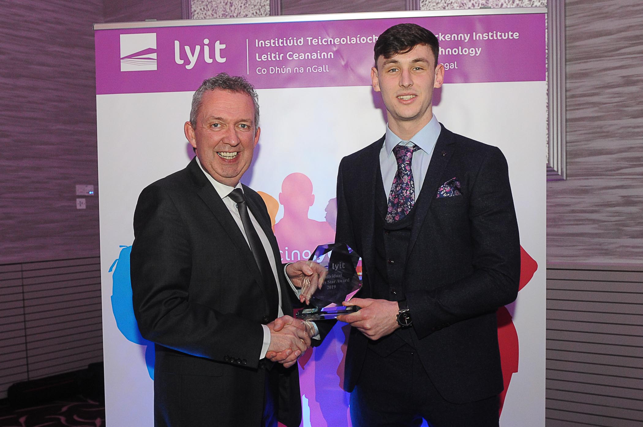 Mr Paul Hannigan President of Lyit presents Michael Langan (GAA Men), with the Individual Sports Star Award at the Lyit Student Achievements Awards in the Radisson Hotel Letterkenny on Thursday night.Photo by Gerard McHugh