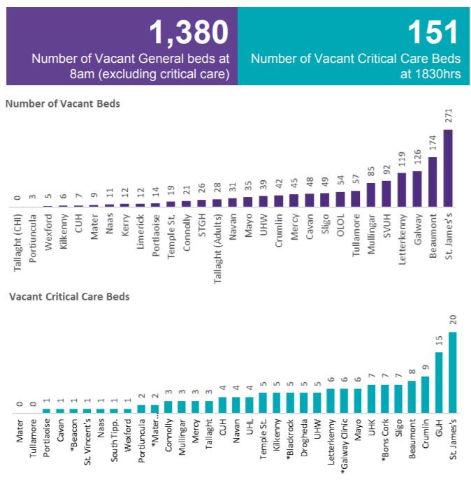 HSE figures show yesterday, there were 1,380 general hospital beds available nationwide, with 119 vacant beds at Letterkenny University Hospital, the fourth highest figure in the country.