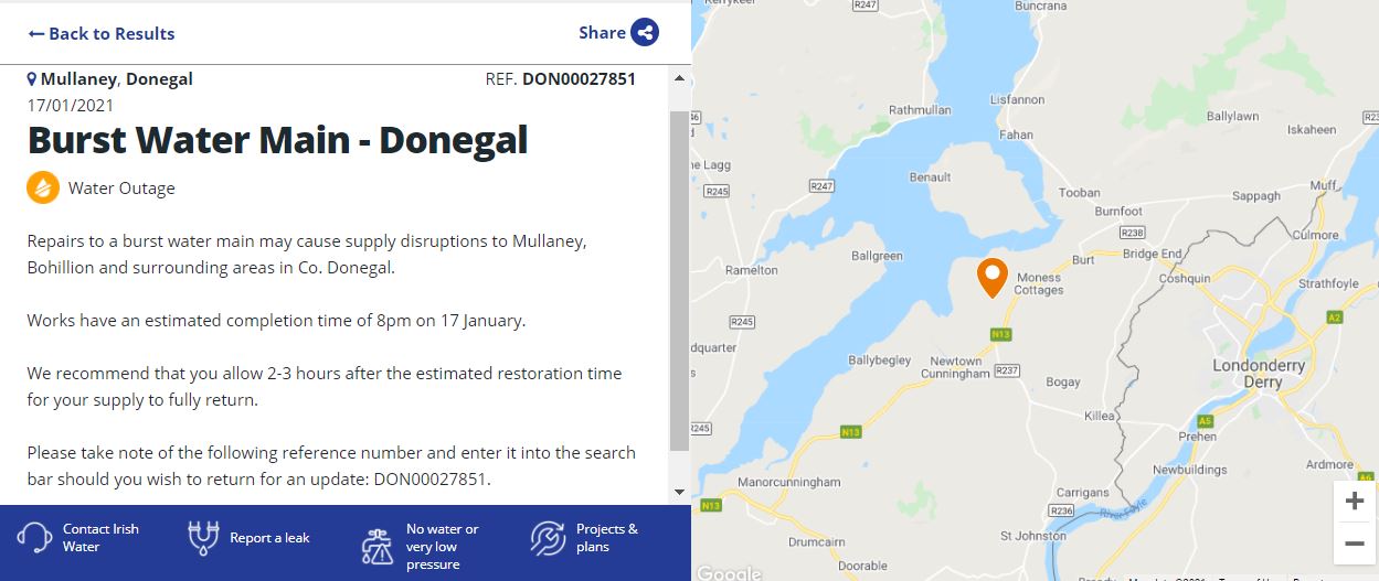 Burst pipe causes water outage in Inishowen