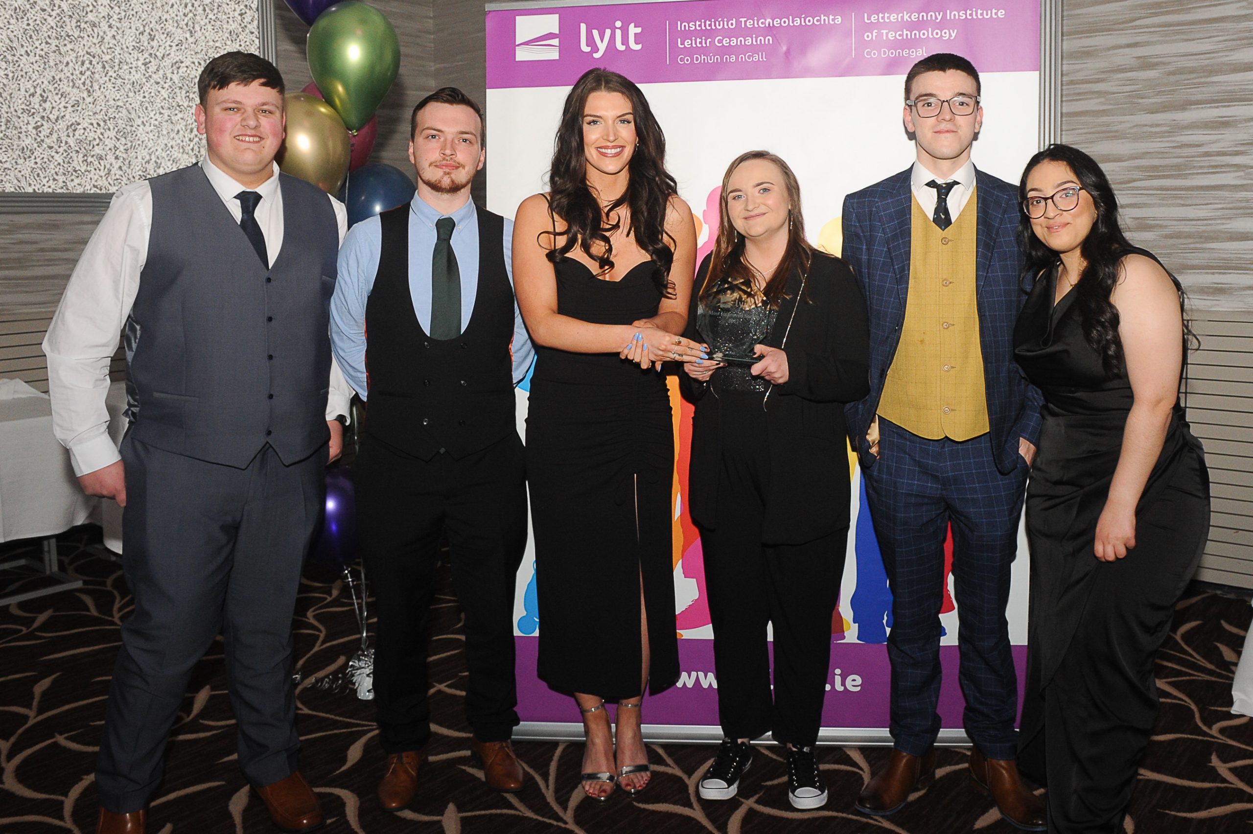 Member of the Law society winners the Most Improved Society 2022 at Lyit pictured Paul Hannigan President Lyit, Grainne Gallanagh special Guest ,Eanna McDermott Lyit Students union Education & Communications officer Josephine Wison Student union General manager ,Michael Murphy Head of Sport Lyit, Billy Bennett – VP for Academic Affairs and Registrar, Anne Marie Kelly Registrar’s office, Dr. Vicki O’Rourke Business Dept. Lyit,
