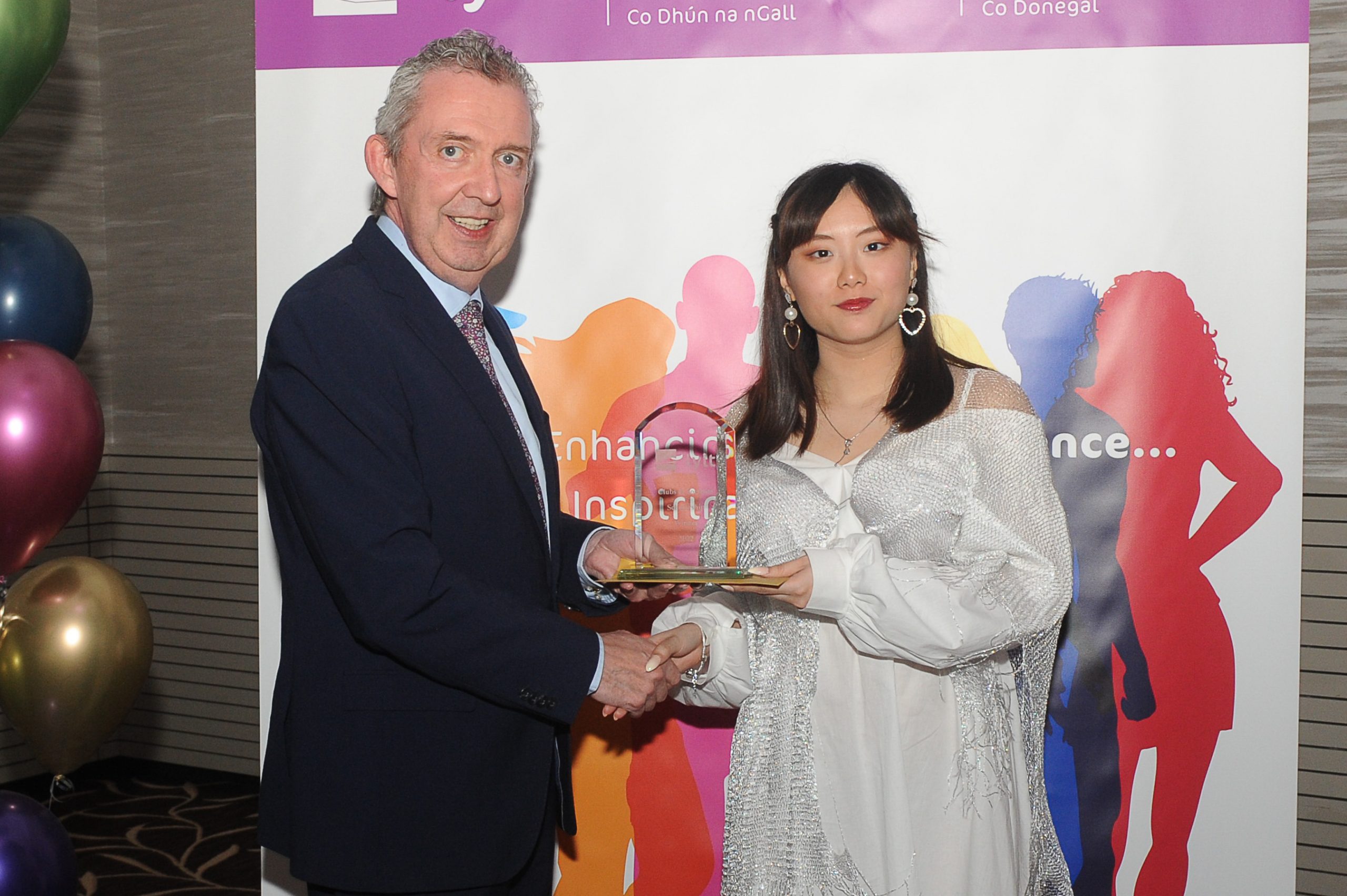 Grainne Gallanagh special guest at Lyit Student Achievement Awards night presents Min Jai Tan, Badminton & International Societies winner of the Leadership Award 2022 is –