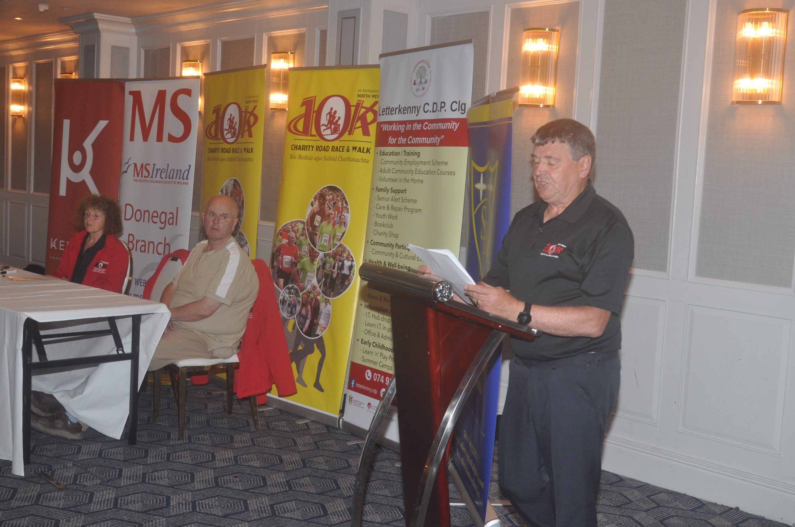 And it was a significant day for Danny McDaid as the Special Guest who fired the starting gun to get the runners and walkers on their way. The two time Irish Olympian also presented the prizes to the winners afterwards. With such a big event taking place in Letterkenny there was inevitable some traffic disruption. At Monday night’s cheque presentations Neil Martin thanked the public for their cooperation with the Gardai and the marshalls.