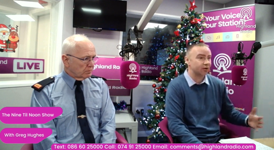 The Head of the Donegal Traffic Corp Inspector Seamus McGonagle and John Joe McGowan from the Ambulance Service join Greg with a Christmas Road Safety message.