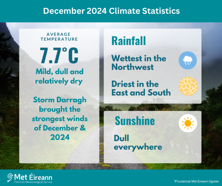 Met Eireann says last month was the eleventh warmest December on record since 1900.