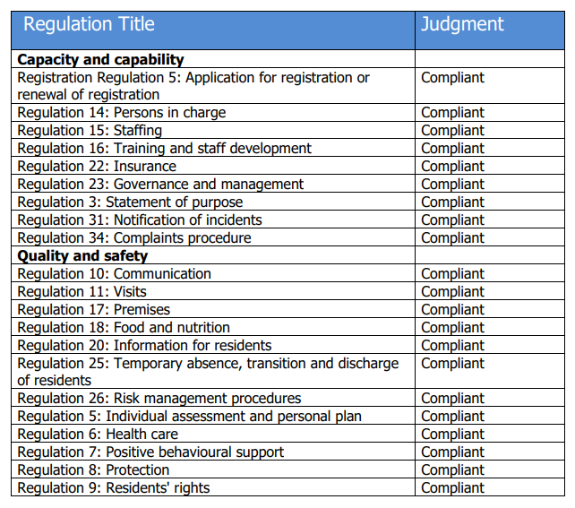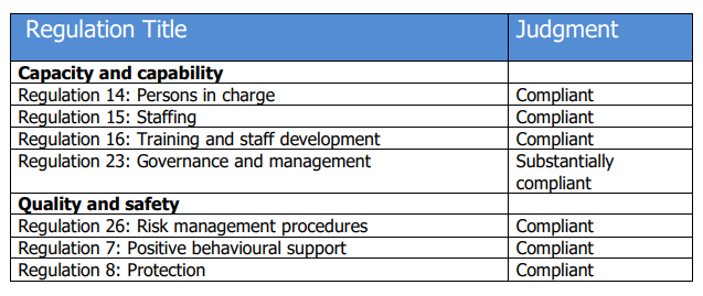 In the case of Dunshenny House, HIQA acknowledges that significant progress had been made to address concerns identified in previous inspections. The centre was fully compliant with six regulations, and substantially compliant with the seventh, governance and management.