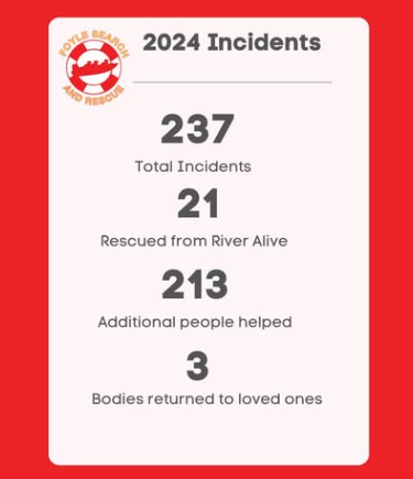 Tributes have been paid to Foyle Search and Rescue in the Stormont Assembly, following the release of statistics that in 2024, they responded to over 237 incidents, recovered 21 people alive from the water, and returned the bodies of three people to their families.