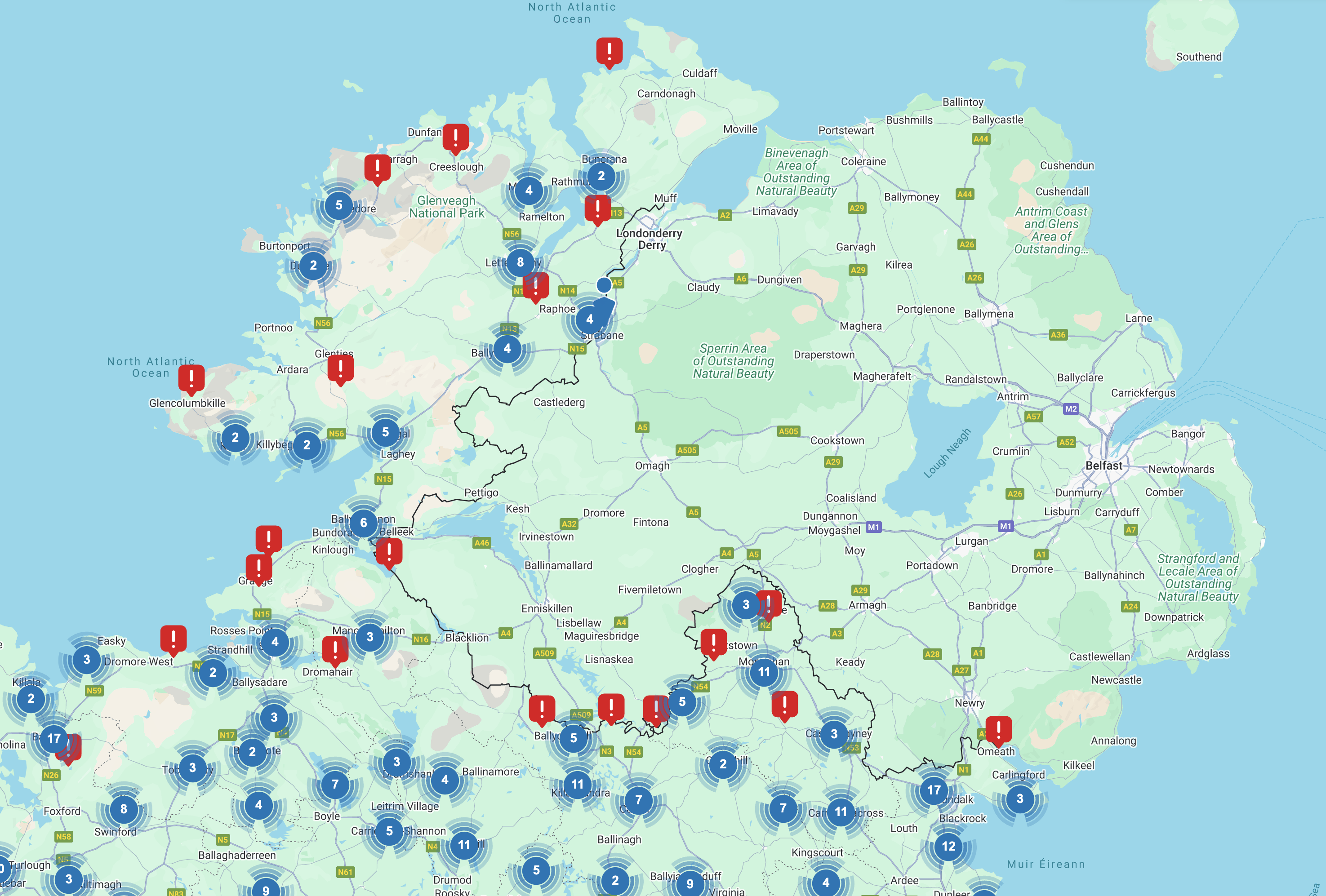 Power outages are affecting, Milford, Donegal Town, Bundoran, Dungloe, Stranolar, Ballyshannon, Convoy, Kilcar, Newtowncunningham, Creeslough, Derrybeg and Gweedore.
