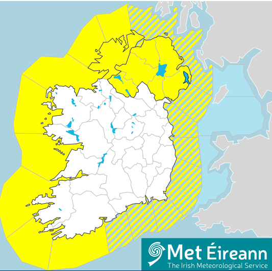 The county is under a Status Yellow wind warning until 11pm tonight, while Met Eireann has also issued a Status Yellow snow and ice alert for the county from 9pm until 9am tomorrow.