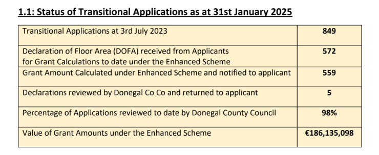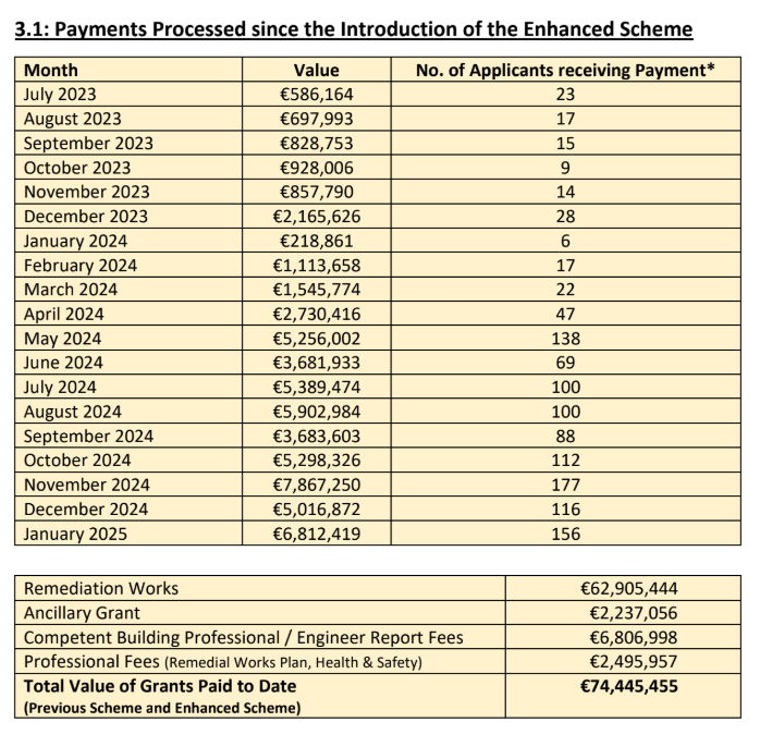 Meanwhile, an update document circulated to members says the council has paid out just over €74 million, and approved just over €186 million.