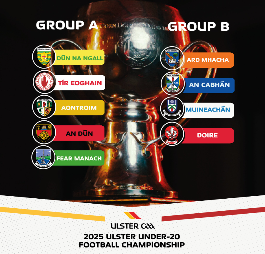 The groups for the upcoming 2025 Ulster Under-20 Football Championship have been confirmed.