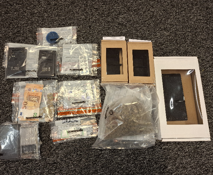 A quantity of suspected herbal cannabis, cocaine, and diazepam tablets, with an estimated street value of £3,500, were seized as a result of the search.