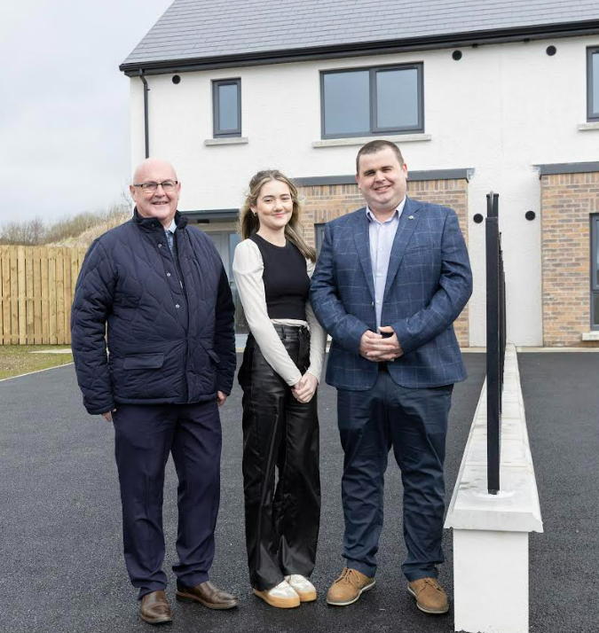 Cllr. Patrick McGowan, Cllr. Dakota Nic Mheanman and Cllr. Martin Scanlon pictured during recent visit to new Social Housing Estate at Corran an Lín, Convoy