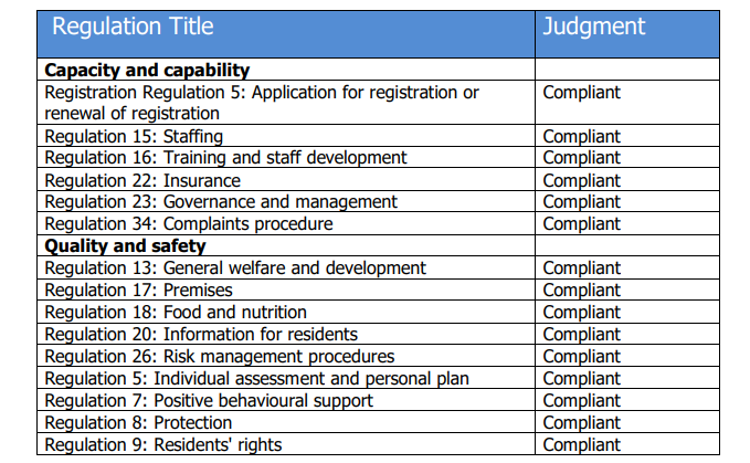The centre was found to be compliant with every regulation that was assessed.
