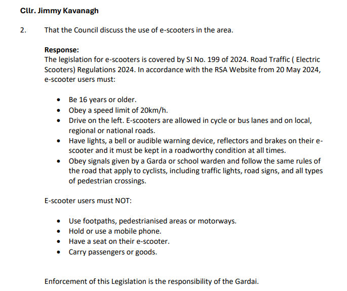 Donegal County Council is to seek a meeting with gardai to discuss the use of e-scooters in Letterkenny, on foot of motions this week from Cllr Jimmy Kavanagh and Cllr Gerry McMonagle.