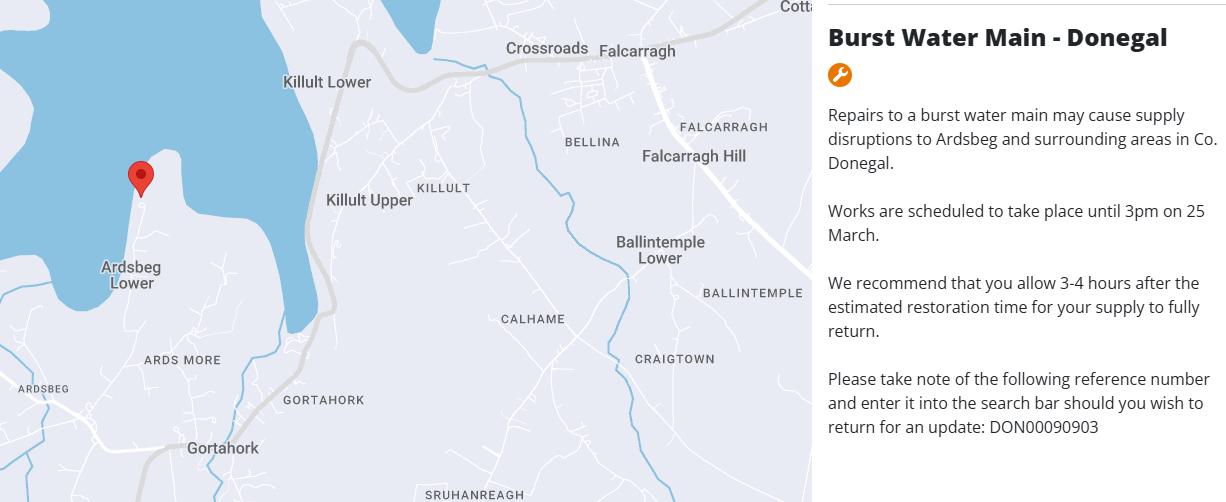 Uisce Eireann say repairs to a burst water main may cause supply disruptions to Ardsbeg and surrounding areas today.
