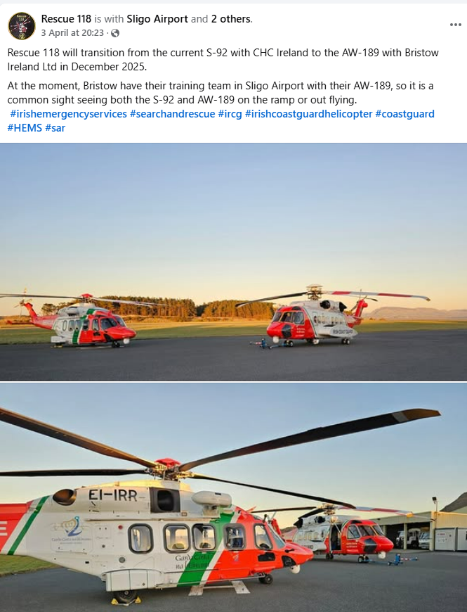 Bristow will slowly begin to operate bases at Sligo, Dublin, and Waterford, with Rescue 118 transitioning in December of this year.