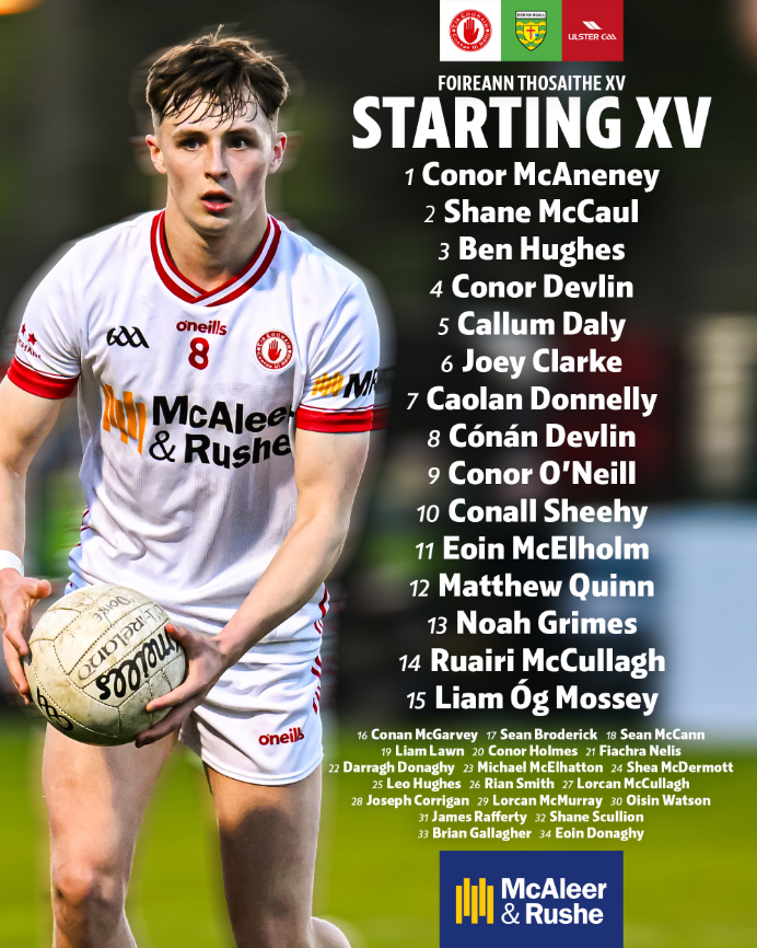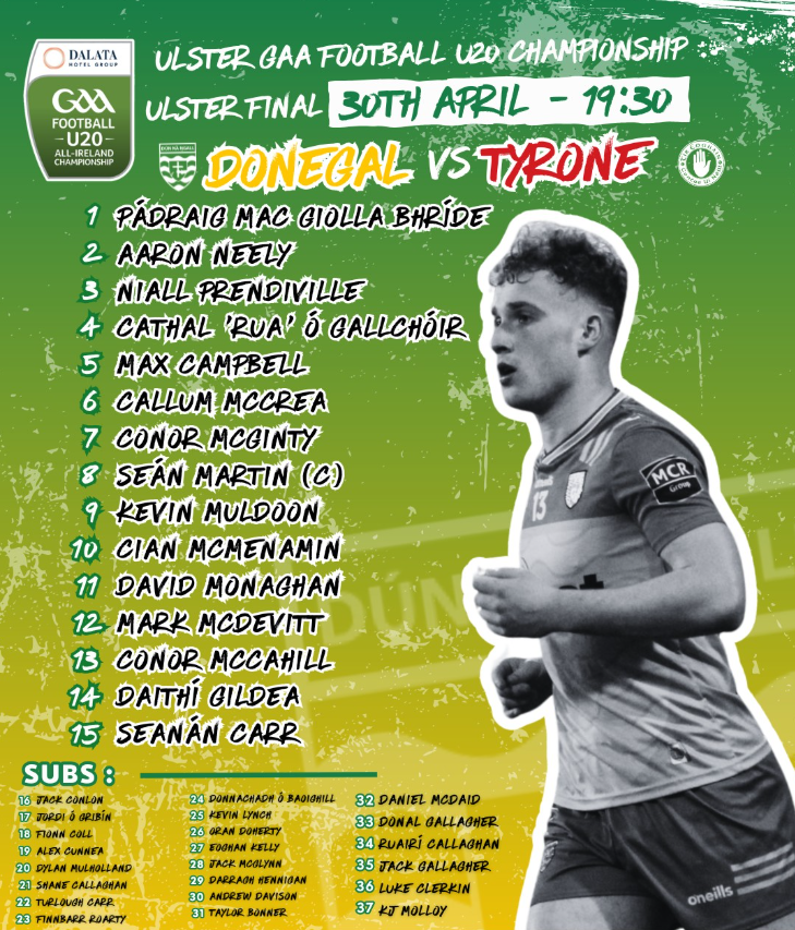Donegal will face Tyrone in the Ulster U20 Football Championship Final at Owenbeg this evening from 7:30pm.