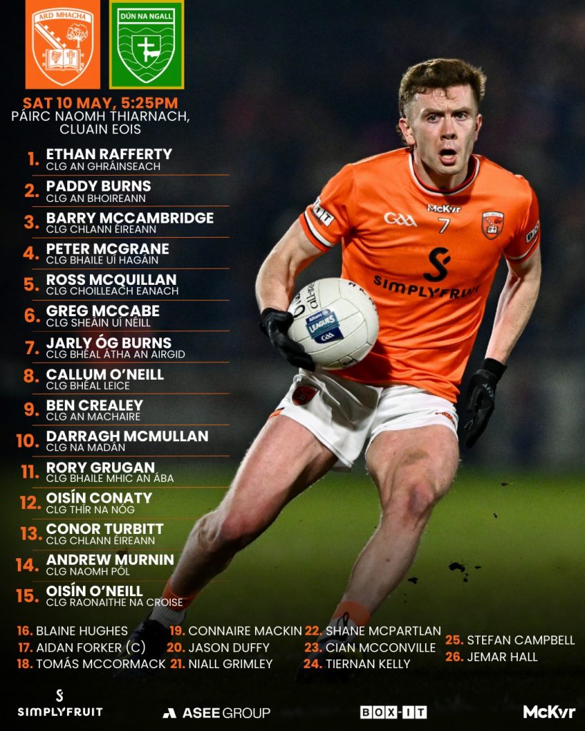 Donegal and Armagh have named their teams for Saturday’s Ulster Final in Clones.