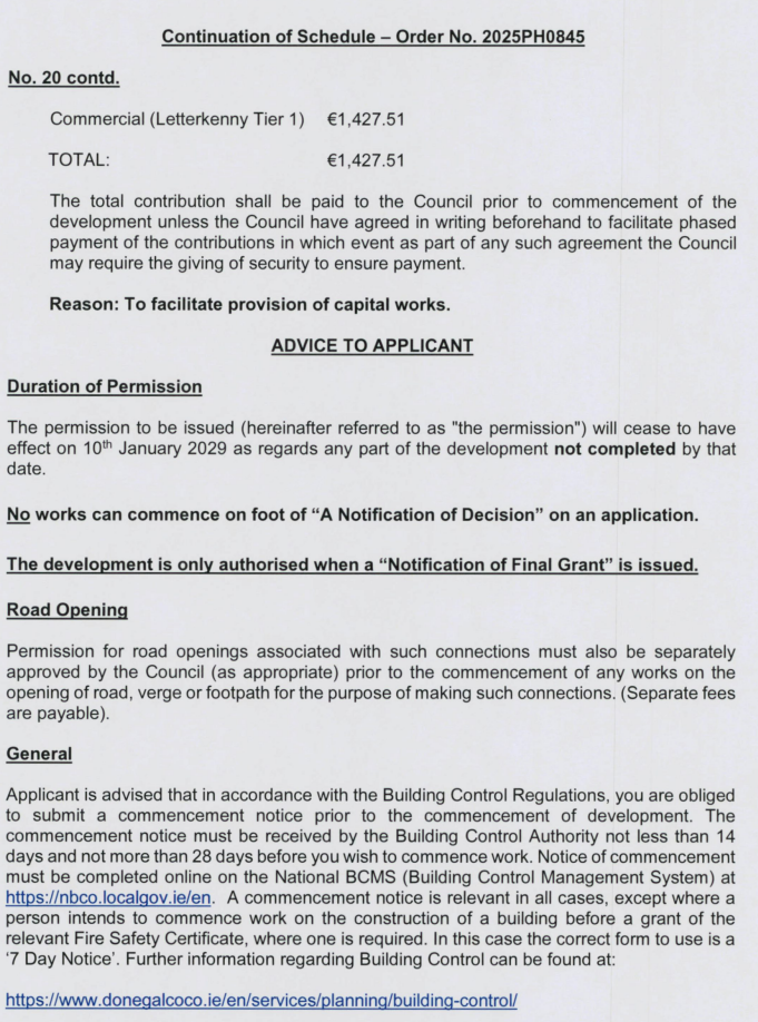 No appeals were made to An Bord Pleanala, and the final go ahead has now been confirmed.