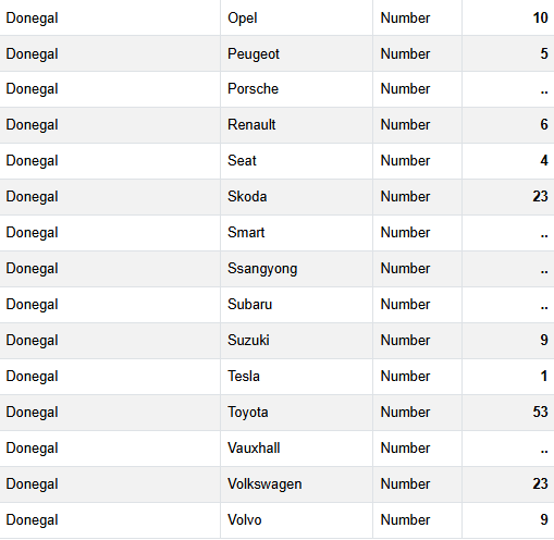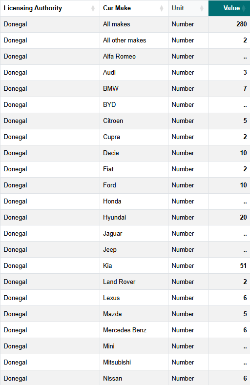 There were 280 new cars sold in Donegal in April, eight less than during March and 43 more than April of last year.
