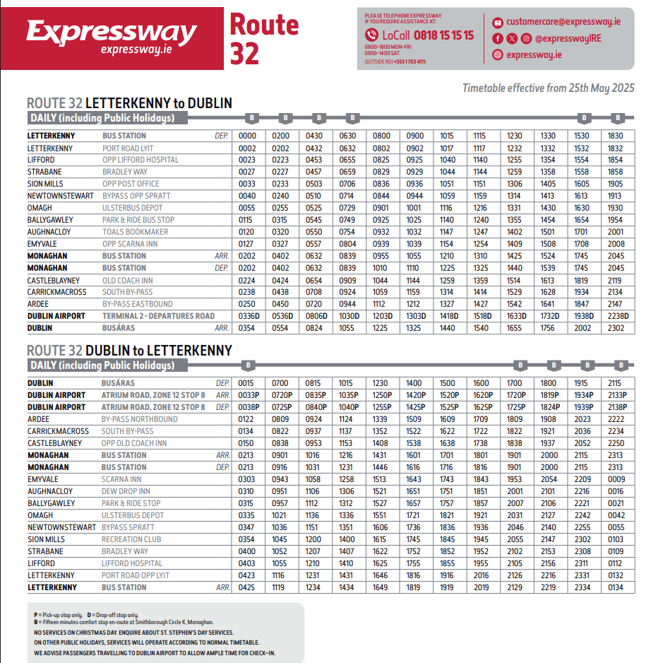 Bus Eireann’s confirmed an enhanced timetable for its Route 32 service linking Letterkenny and Dublin will come into effect on Sunday May 25th.
