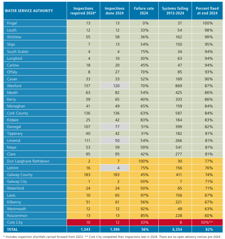 Nationally, 82% of failures between 2013 and 2024 were fixed by the end of last year, with that figure mirrored in Donegal.