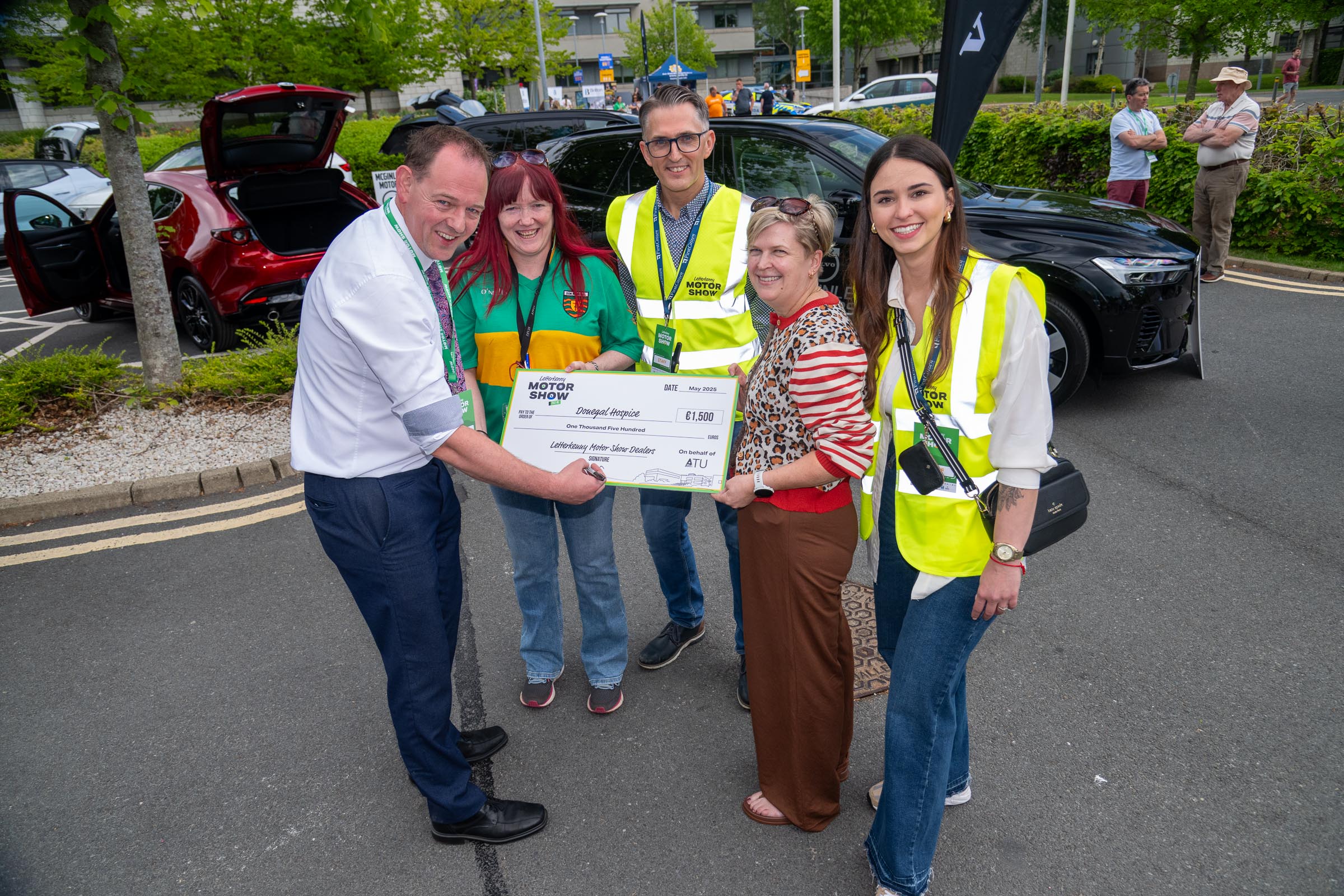 Following the success of this year’s Letterkenny Motor Show, the organising motor dealers, now proudly known as the Letterkenny Motor Show Dealers 2025, are pleased to announce a donation of €1,500 to Donegal Hospice, made on behalf of ATU Donegal, their venue partner.