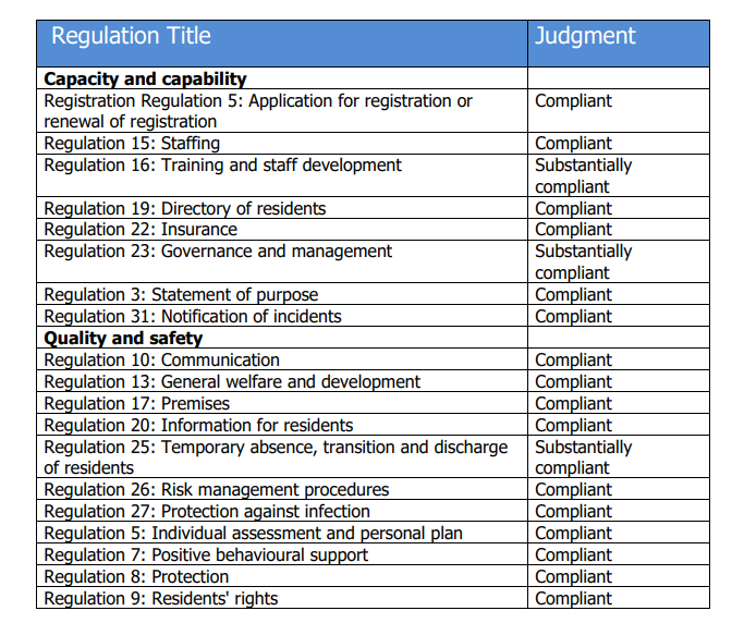 The report found the facility was person-centred and to a good quality, but some areas for improvement were identified.