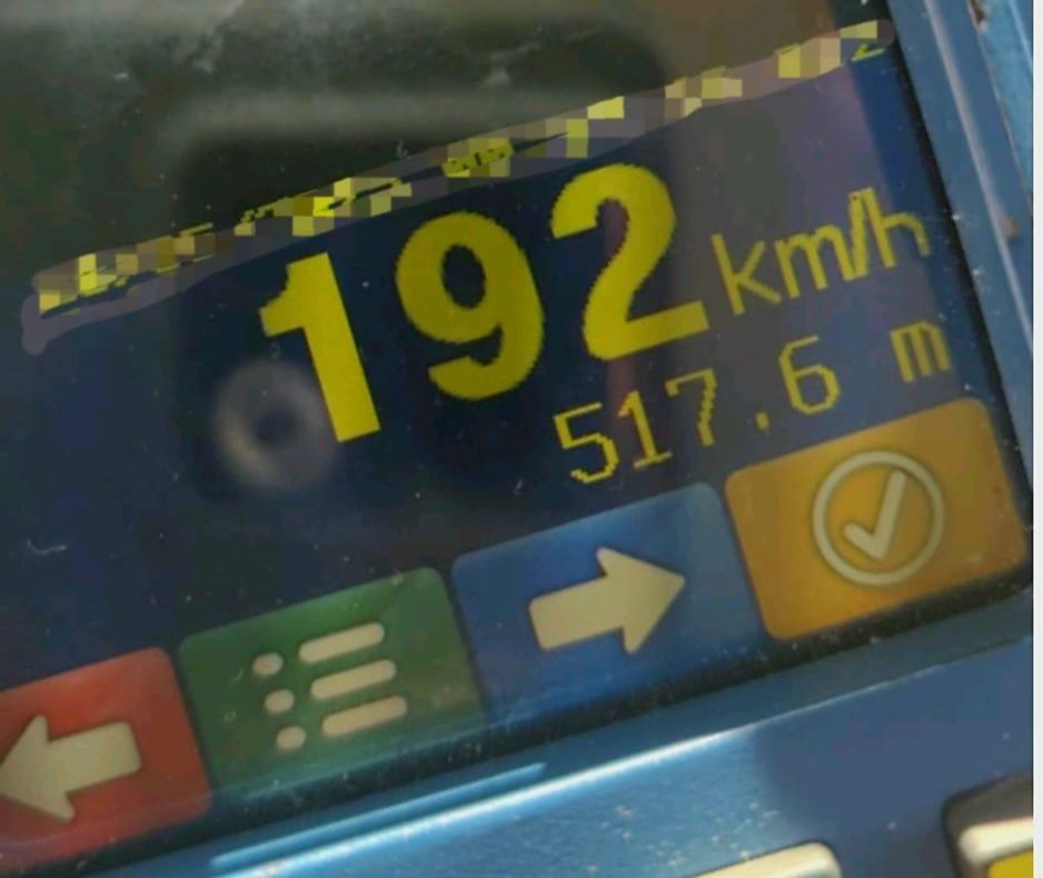 The driver has been caught travelling at 192km/h in a 100km/h speed zone.