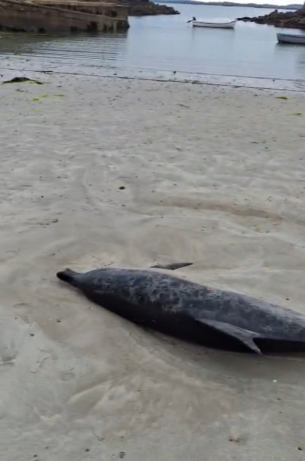 A dead dolphin that washed up in West Donegal is hoped to be removed this evening.