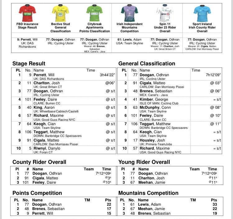 Doogan also leads the points classification, the u23 category and is the top county rider.
