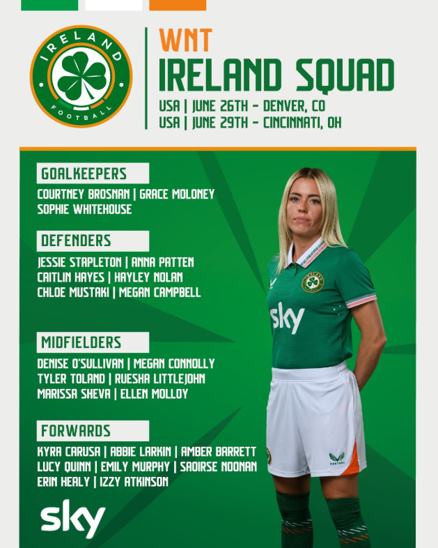 Ireland will take on the World No.1 for the 16th time in their history in the first game on Thursday, June 26th in Denver, Colorado (02:00am Irish Time) before they meet again on Sunday, June 29th in Cincinnati (20:00 Irish Time).