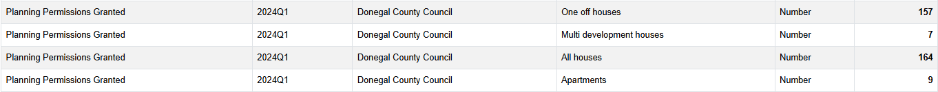 That compares to 164 permissions for houses and nine for apartments in the first quarter of 2024.