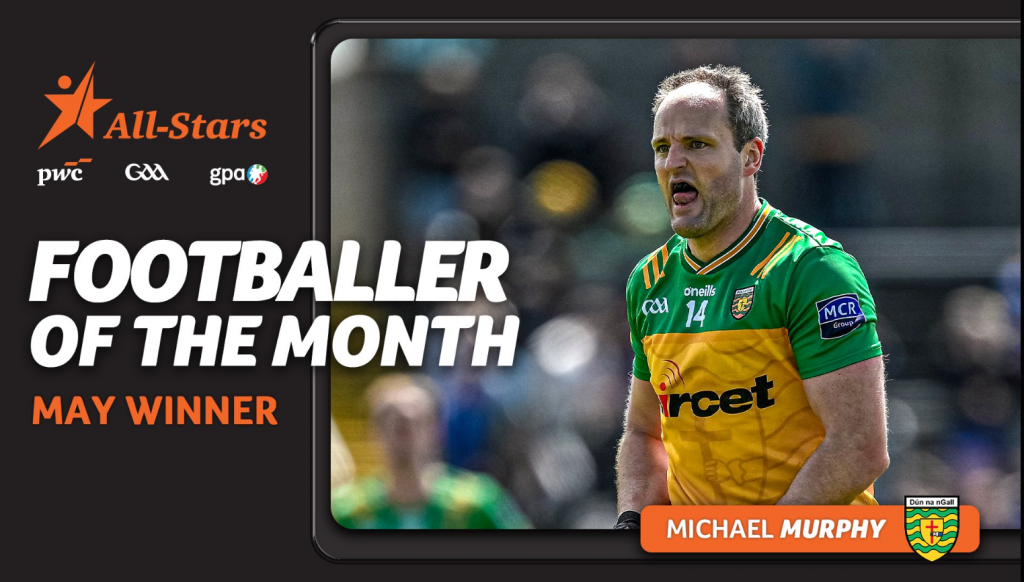 Michael Murphy has been named the PwC GAA/Gaelic Players Association Football Player of the Month award for May.