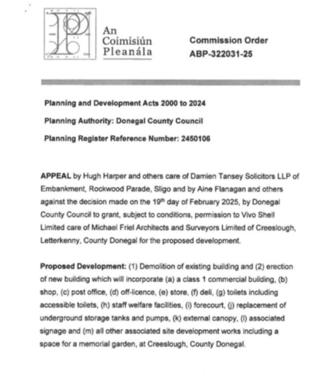 On February 19th, 2025, Donegal County Council granted planning permission to Vivo Shell Limited for the proposed development of a new service station. The works included the demolition of the existing building and the creation of space for a memorial garden.