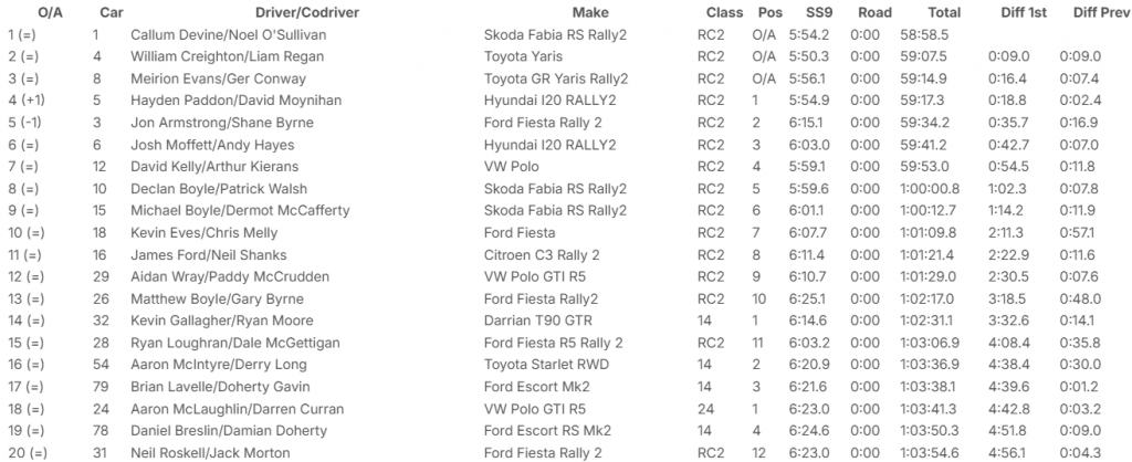 Rally Stage 9: Devine’s lead cut to 9 seconds as Creighton sets back-to-back fastest stages