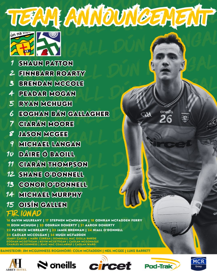 O’Baoill was also named to start last week’s prelim in Ballybofey but was replaced by McColgan before the throw-in.