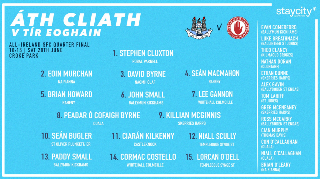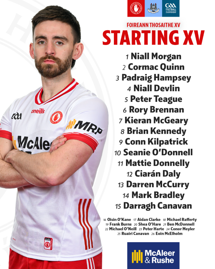 Tyrone have announced their team to take on Dublin in the All-Ireland Quarter-Final at Croke Park tomorrow evening (Saturday).