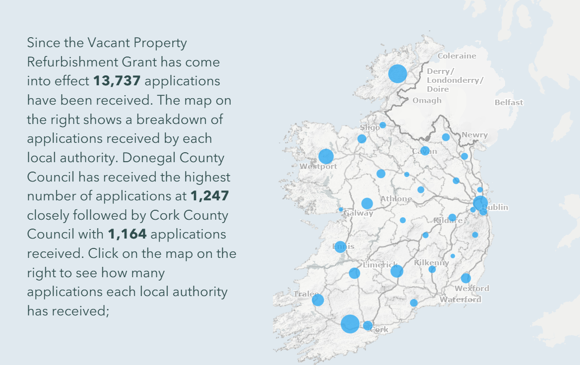 Figures published this morning show that Donegal Council continues to have the highest number of applications received under the Vacant Property Refurbishment Grant, with 1,247 applications received since the scheme began.
