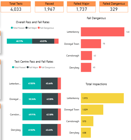 Of a total of 4,033 tests, 1,967 passed, 1,737 failed and 329 failed in a dangerous capacity.