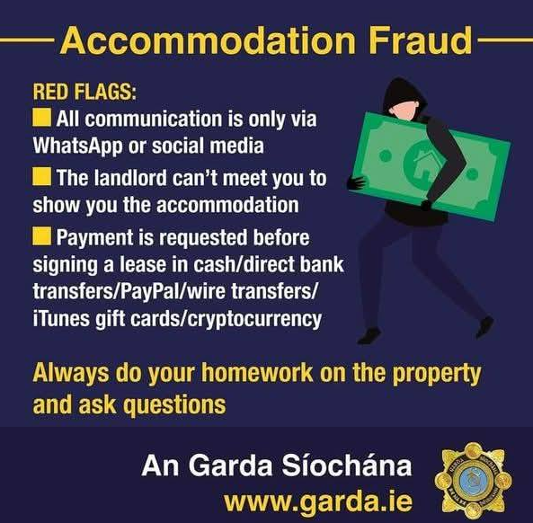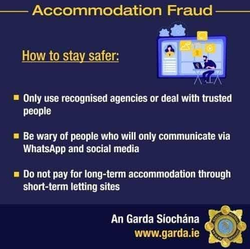 Gardai are urging people, if they fall victim to a rental scam or any type of scam, to alert their bank immediately, as time is of the essence if you have already transferred money, and to report the matter to Gardaí.