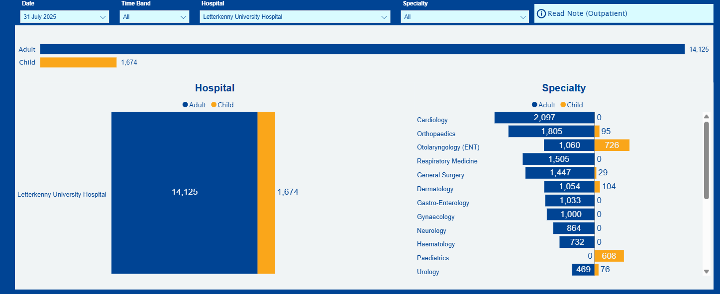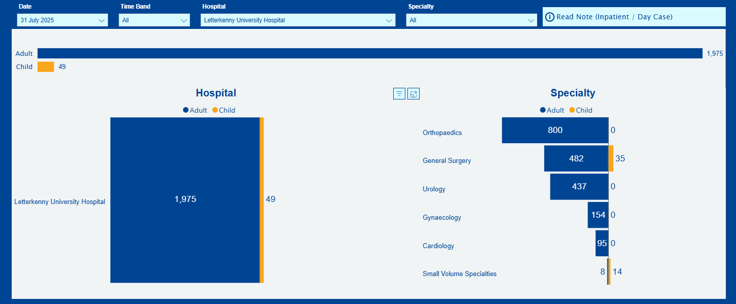 At Letterkenny University Hospital, there were 2,024 people awaiting inpatient procedures at the end of July, 49 of them children. That figure is down 300 on June, a fall of 13%.
