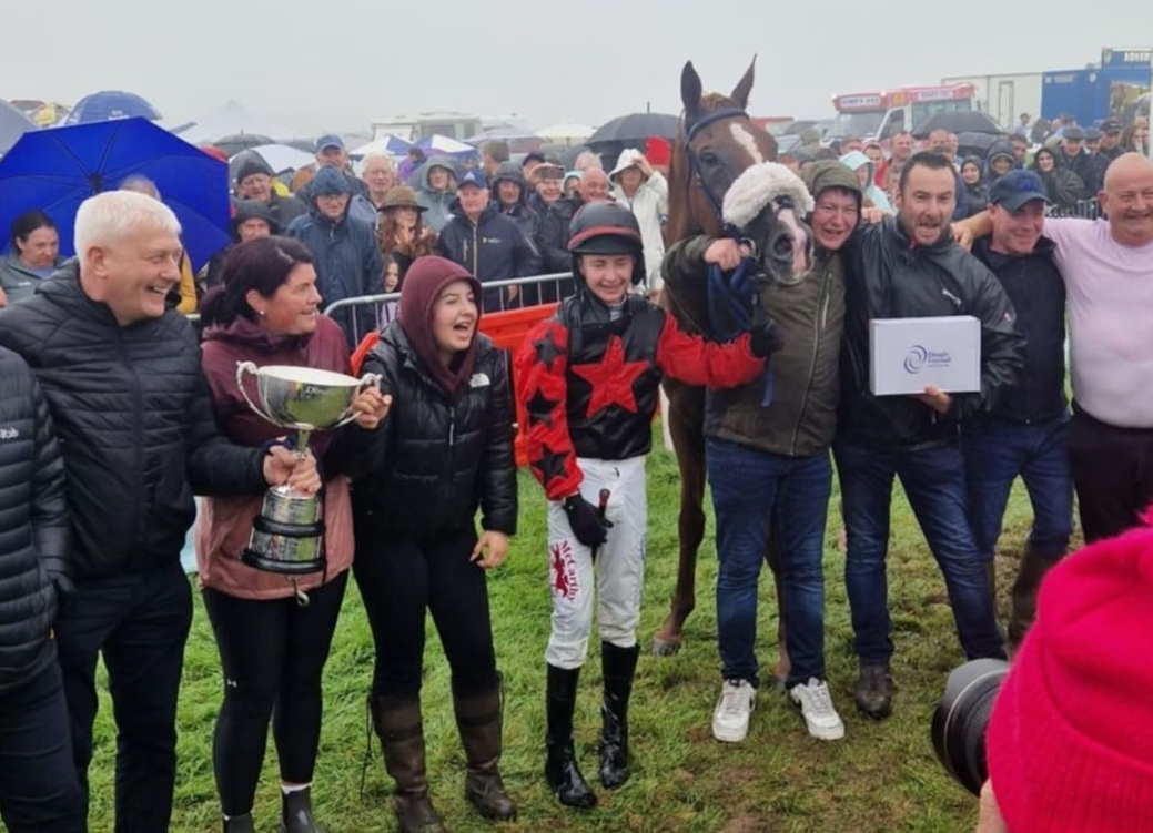 Kerry man Billy Roberts was the jockey but the horse, “Here We Go Again” is owned and trained by Rathmullan Father and Daughter combination – Noel and Leona McLaughlin.