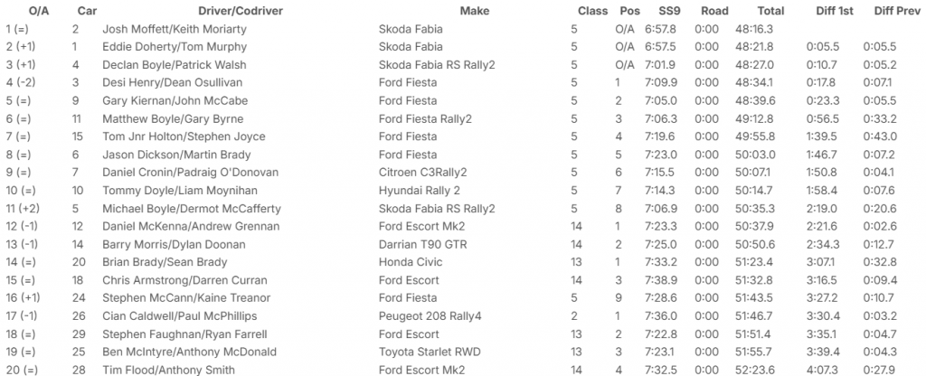 Declan Boyle and Patrick Walsh were the highest-finishing Donegal crew as they came in third spot, a further 5.2 seconds back on the leaders.