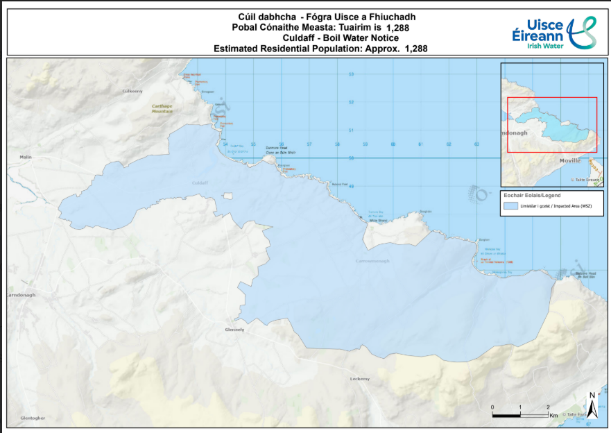 Following consultation with the HSE, Uisce Éireann says it issued the notice to protect the health of customers supplied by the Culdaff Public Water Supply.