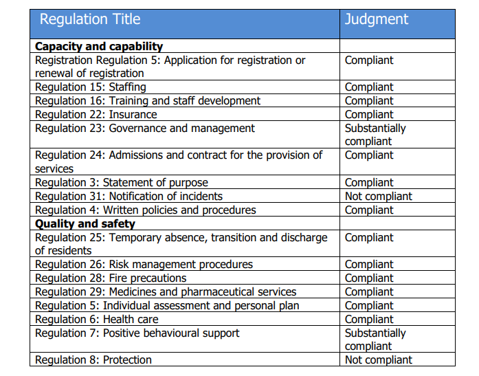 Two non-compliances were noted, one in relation to notification of incidents, the other in the area of protection.
