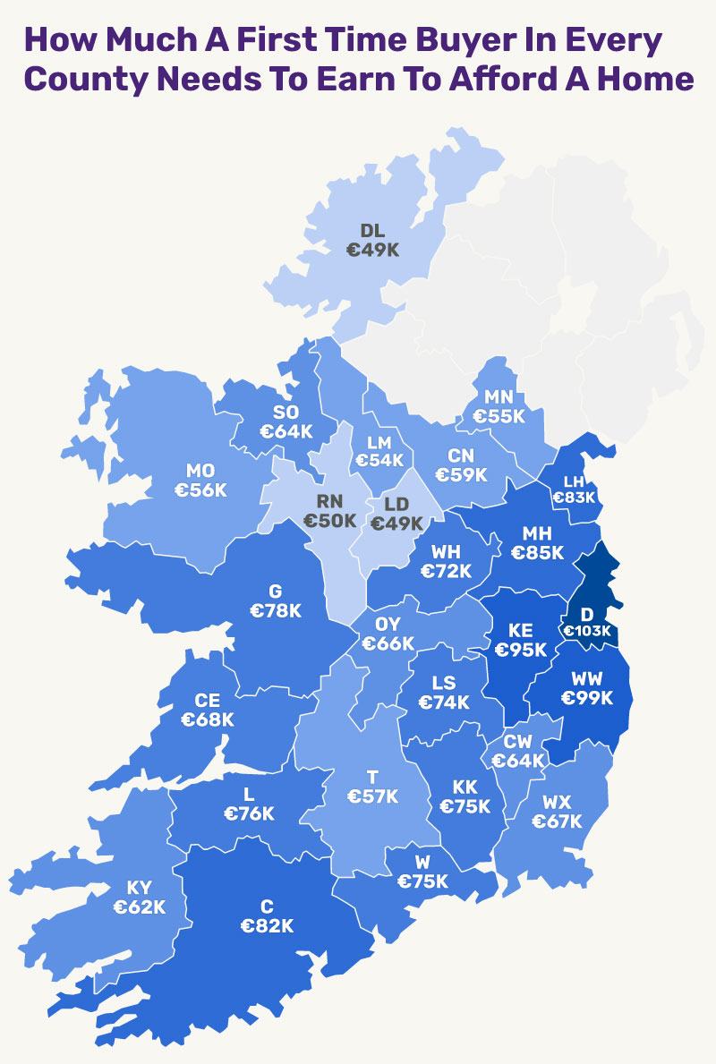 According to research by Chill Insurance, a single applicant now needs just under €50,000 to qualify for a mortgage, lower than salaries required in Dublin or Wicklow.