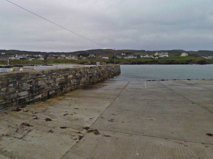 Cars parked on Portnablagh Pier caught by the incoming tide