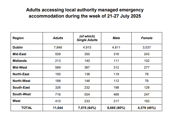 In July, 16,058 people were registered as homeless across the country, 188 of them were in the North West. That figure is up 5% on figures from the previous month.